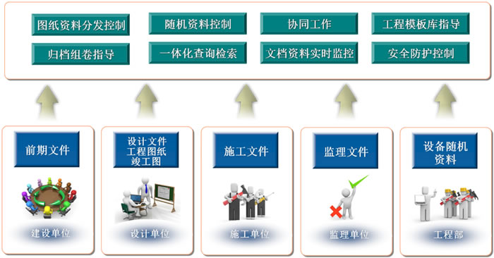 3、解決工程項(xiàng)目文檔協(xié)同難的問題。系統(tǒng)將依托企業(yè)工程網(wǎng)絡(luò),連接包括設(shè)計(jì)、監(jiān)理、施工、建設(shè)、工程部在內(nèi)的所有參建單位,形成網(wǎng)絡(luò)化的協(xié)同工作平臺,完成零距離的信息交互。利用在線編輯、電子蓋章、電子簽名等先進(jìn)的技術(shù),工程項(xiàng)目文檔資料完全可以實(shí)現(xiàn)在線流轉(zhuǎn)、審批,大大提供工作效率。線下幾周才能完成的工作,系統(tǒng)內(nèi)一會兒即可搞定。